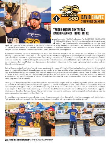 of Concrete show and saw the SPECMIX BRICKLAYER 500 competition. Back home in Houston he told Chavez about it and asked if he wanted to