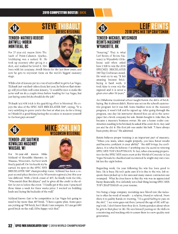peat second-place finisher at the Wisconsin regionals, but this year quests have picked up in his area and many mason contractors are