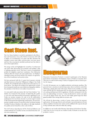 tion of both traditional and modern styles. Husqvarna Construction Products is excited to participate in the Masonry
