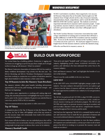young people looking to start or advance their career in the industry. projects the MCAA is working on to promote the masonry trade and
