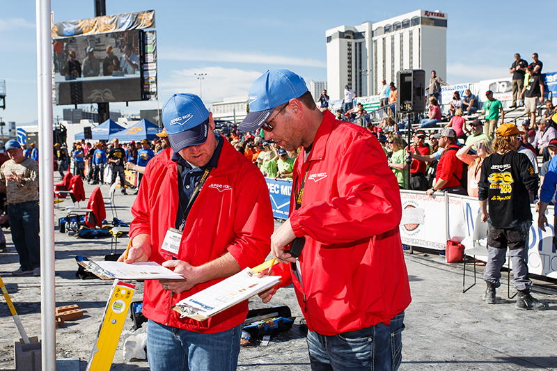 With over $125,000 in cash & prizes including a Ford F250 4×4 and John Deere Gator on the line, it’s important that the judges be knowledgeable, qualified, and above all fair. SPEC MIX carefully selects over 25 highly respected industry professionals to serve as judges that average over 20 years of bricklaying experience. They travel from all over North America to decide who is “The World’s Best Bricklayer”. All these judges, competitors and sponsors will agree this event is critical to “Keeping the Trade Strong”.