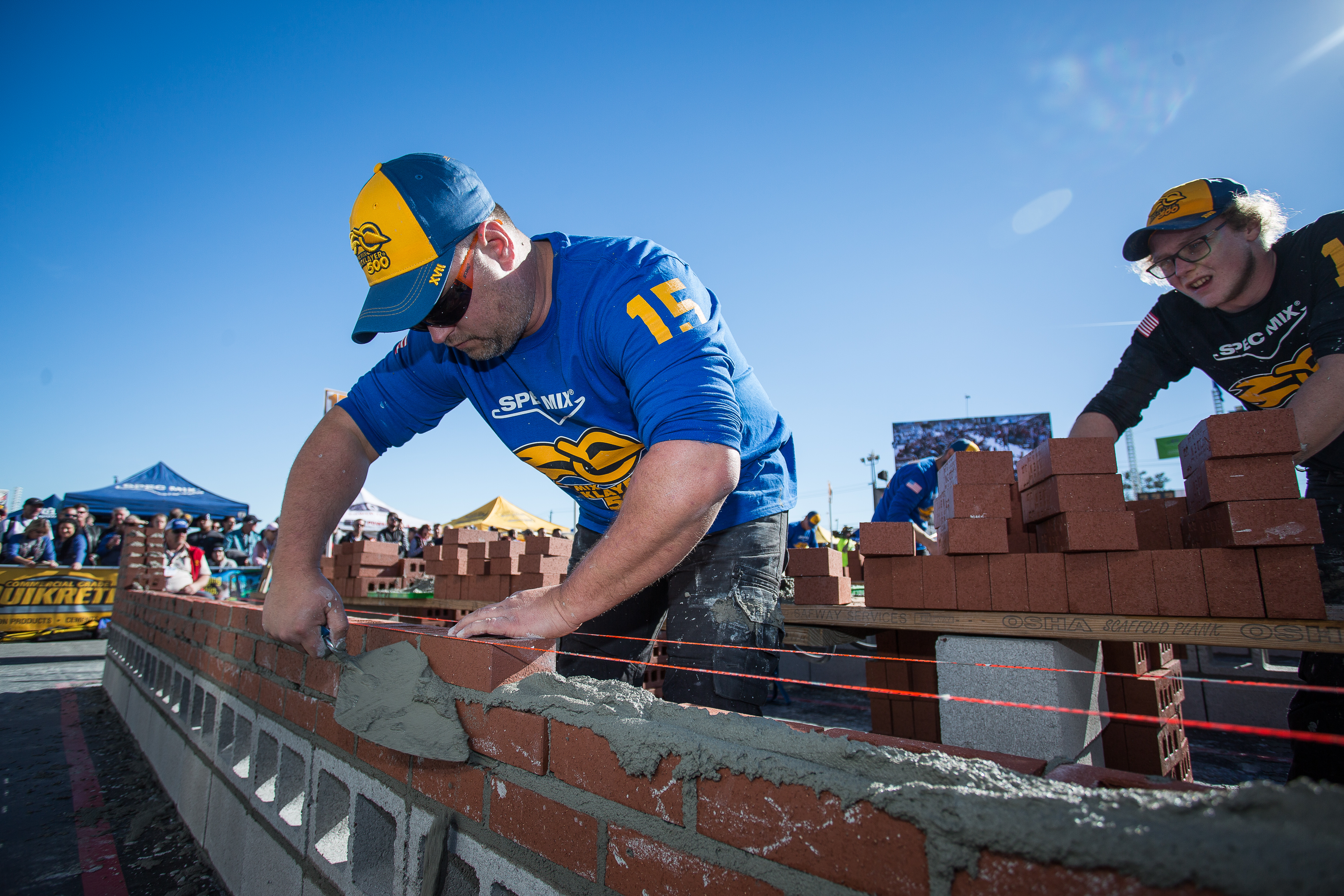 Defending SPEC MIX TOP CRAFTSMAN® Leif Reints, Reints Masonry, Wyandotte, OK, competing in the 2019 SPEC MIX BRICKLAYER 500® World Championship.