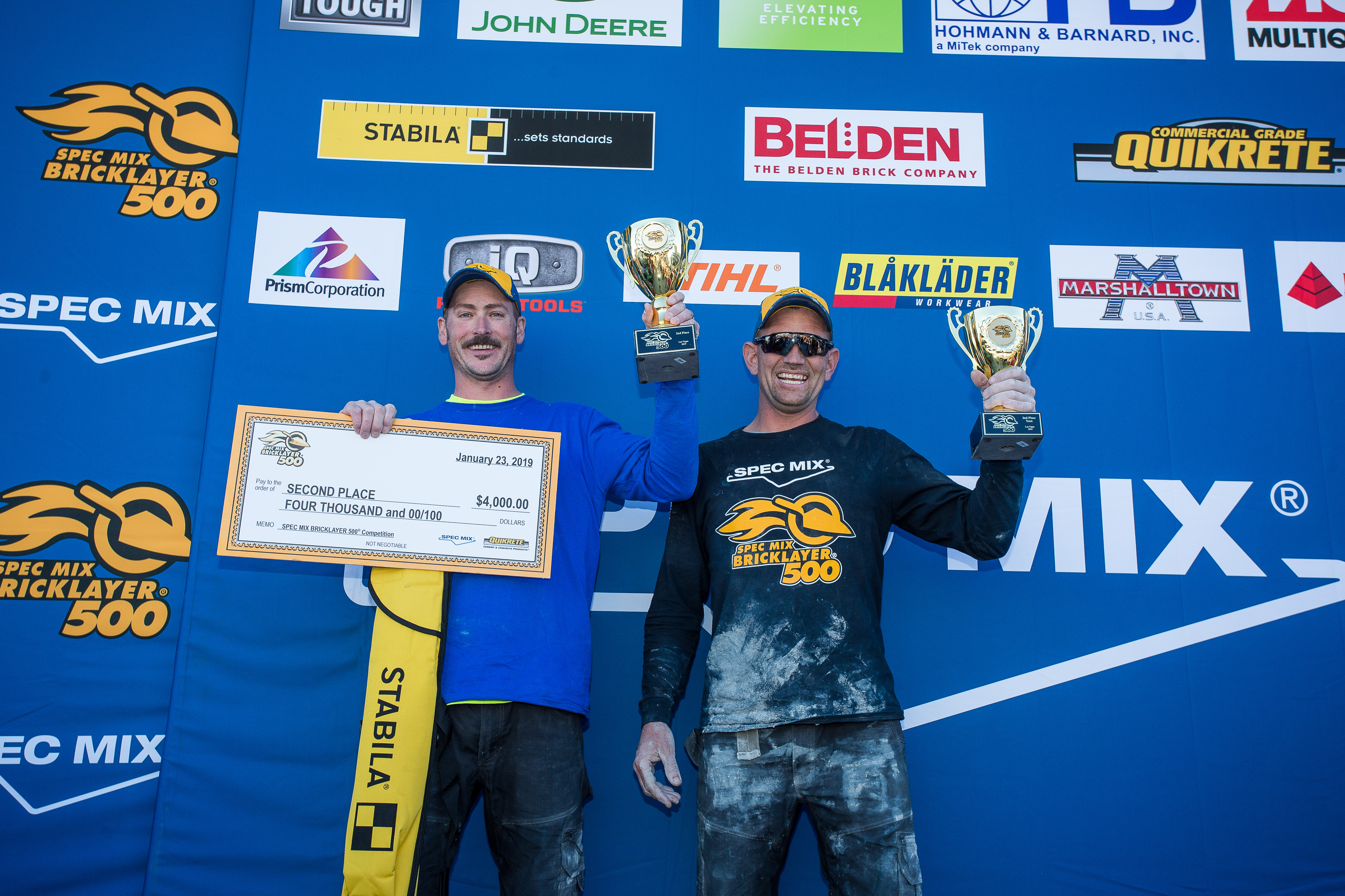 2019 SPEC MIX BRICKLAYER 500® second place mason Cole Stamper, and his mason tender, Forest Stamper, Mason Structure, Lexington, KY.